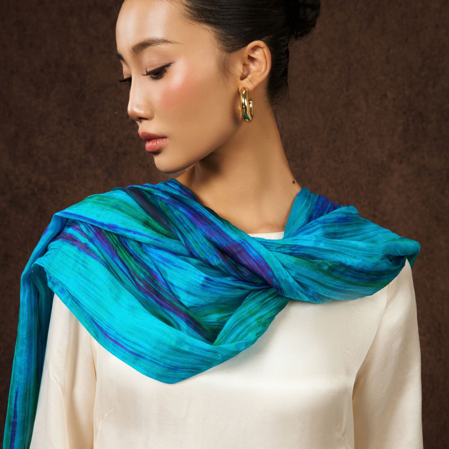 Silk garments should be stored folded in a cool place, away from direct sunlight, as it may cause fabric damage or discolouration.