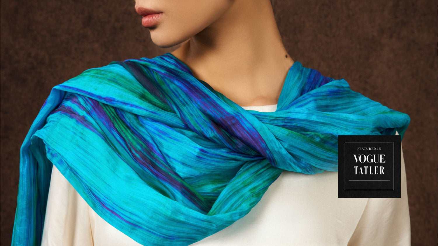 Peacock Blue Brushstroke Silk Scarf – Hand-Dyed Mulberry Silk Shawl, Lightweight Elegant Wrap