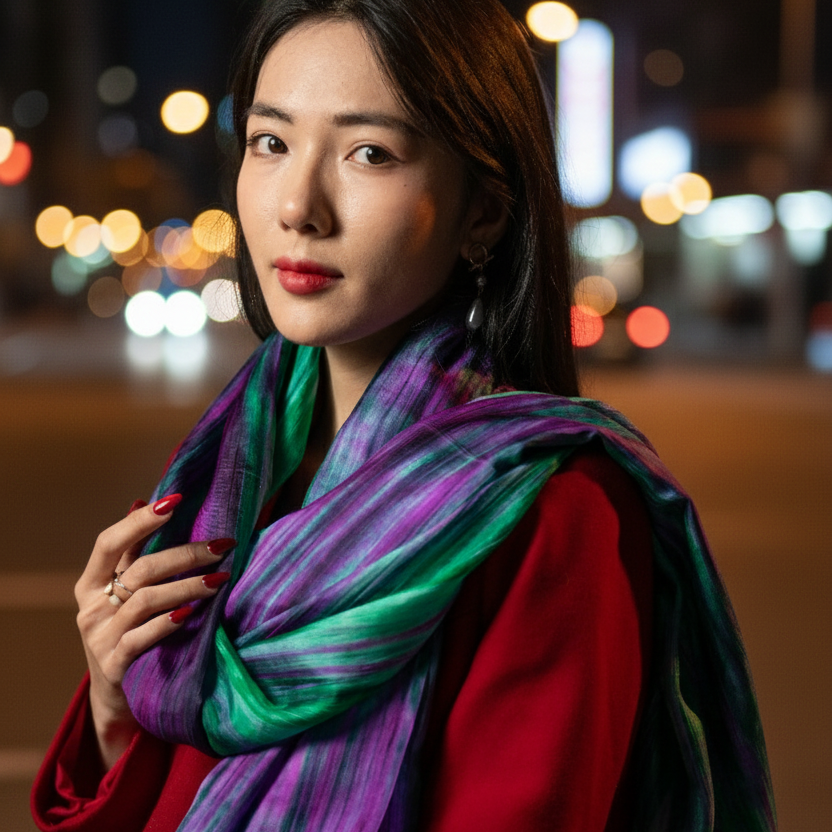 Emerald Violet Hand-Dyed Mulberry Silk Scarf – Lightweight Sheer Shawl | Luxury Evening Wrap | Artisan Gift for Her